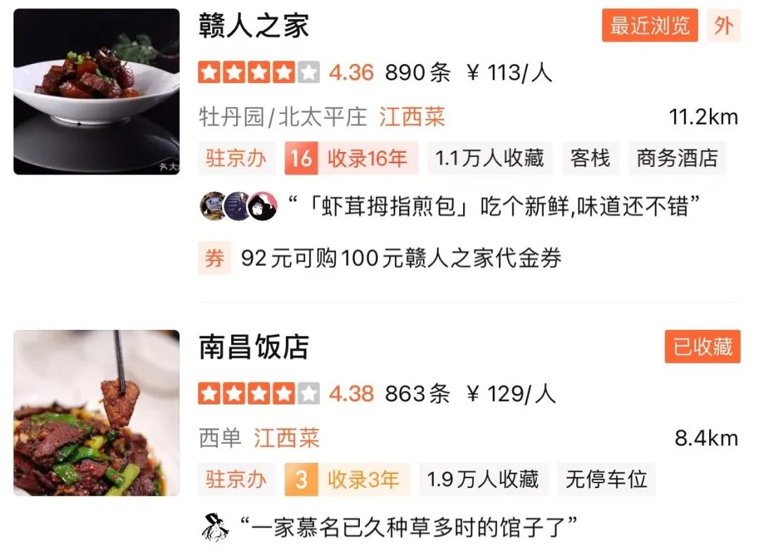 在大众点评上搜索江西驻京办,一共会出现两家,我们去的是南昌饭店,另一位朋友去的是赣人之家,下面把话筒交给她~