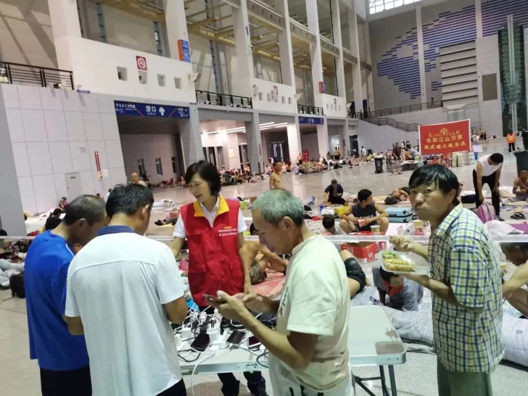 全国三八红旗手“宁波妈妈”张亚芬召集队友,带着60个充电宝及插座来到宁波市国际会展中心临时安置点,为紧急转移到此的近3000名建筑工人送去“暖心电”。“宁波妈妈”志愿者在现场搭了一张简单的桌子,并竖起一个宣传牌作为临时电力服务站,然后将准备好的10多个插座、60个充电宝依次摆放好,为有需要的人员开展免费租用充电宝、插座服务。