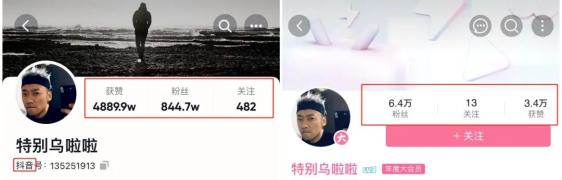 “特别乌啦啦”的抖音B站粉丝数据对比图源 / 抖音、B站