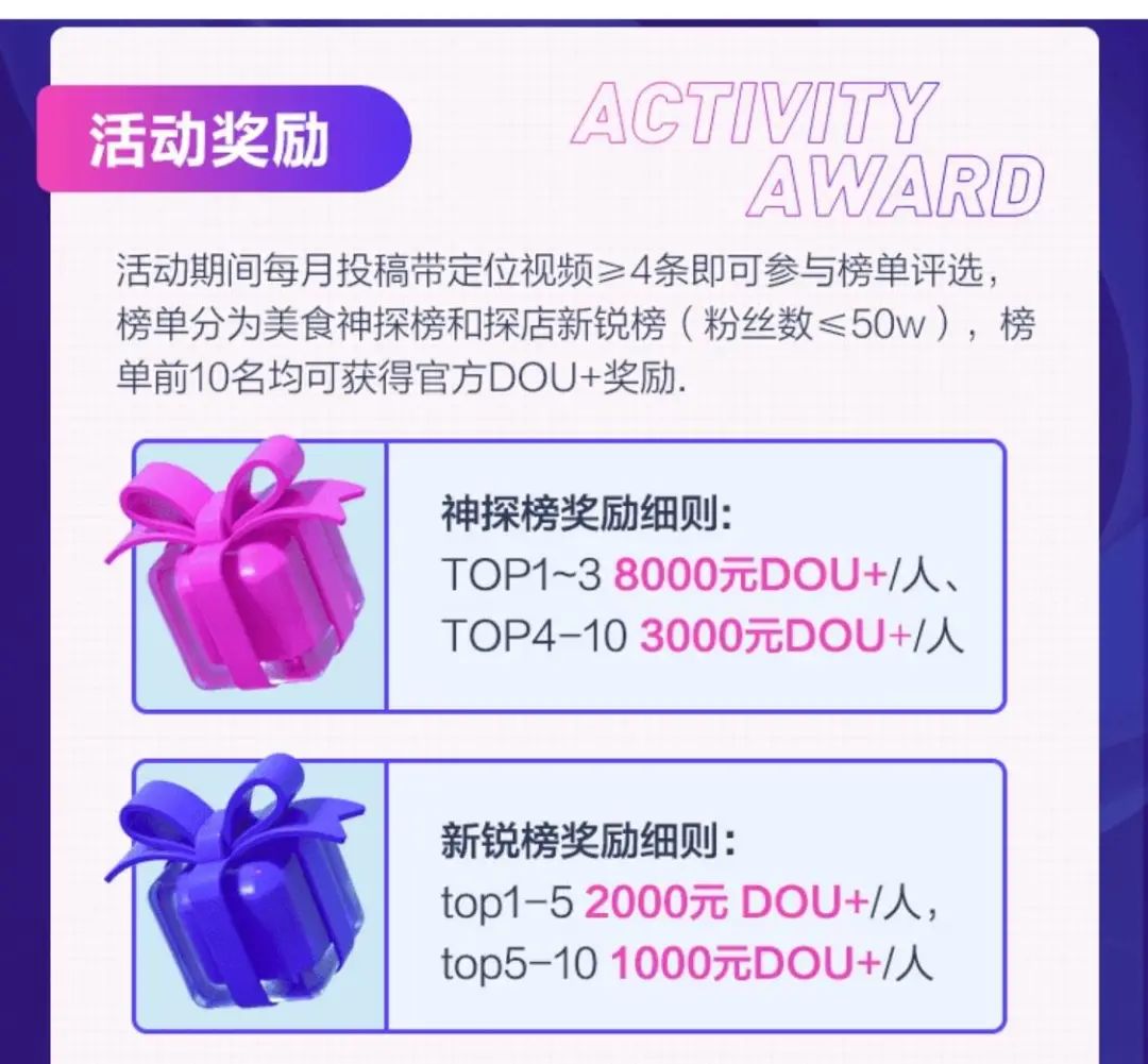 从2018年开始,抖音组建POI(兴趣点)团队,通过LBS定位技术,让用户发布的视频挂上门店POI,由此迈出线上线下打通的第一步;2020年11月推出了“餐饮扶持计划”,为指定商户免费邀请达人探店,并发布探店视频;随后又上线了“探店达人团”板块,并对探店视频进行流量扶持。据抖音探店团的最新一期榜单显示,目前平台已入驻6207名探官。