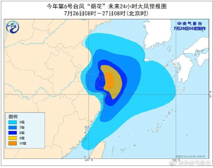 中央气象台7月26日06时继续发布台风橙色预警: