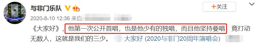 比如去年20周年演唱会上,三少首次公开演唱《大家好》,一句“坚持要唱”,现在看来或许是他想为粉丝留下更多回忆。