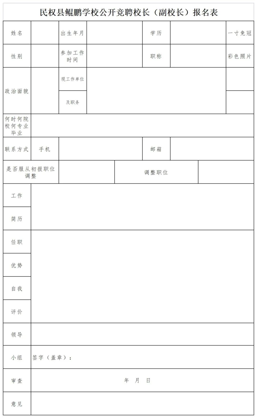 附件:民权县鲲鹏学校公开竞聘校长(副校长)报名表