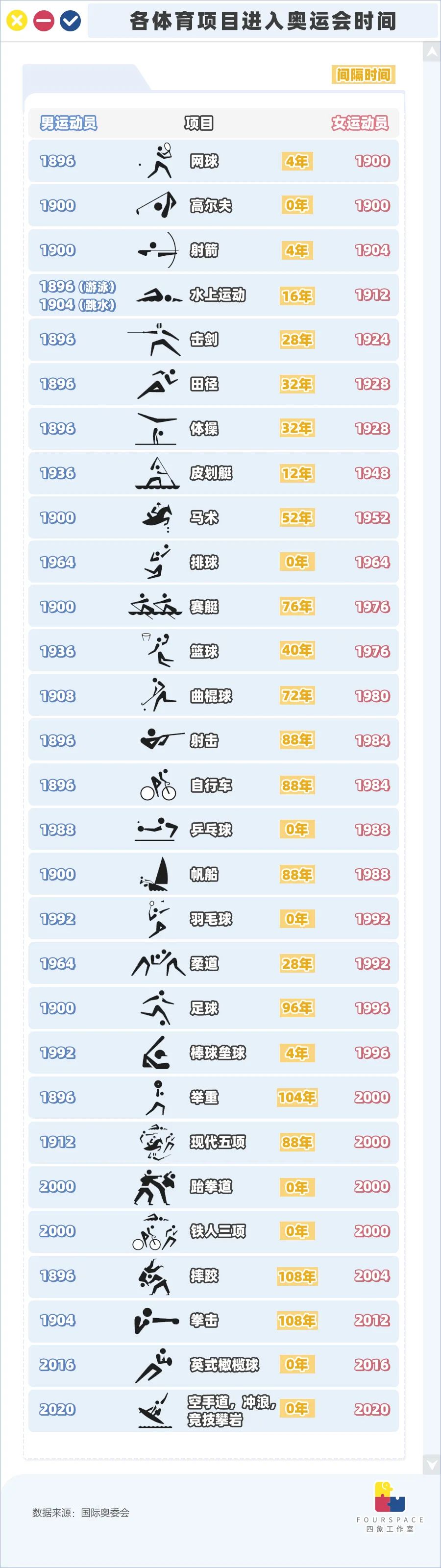 可能观众们并未发觉,但有些我们耳熟能详的项目设立间隔比女足还要久。