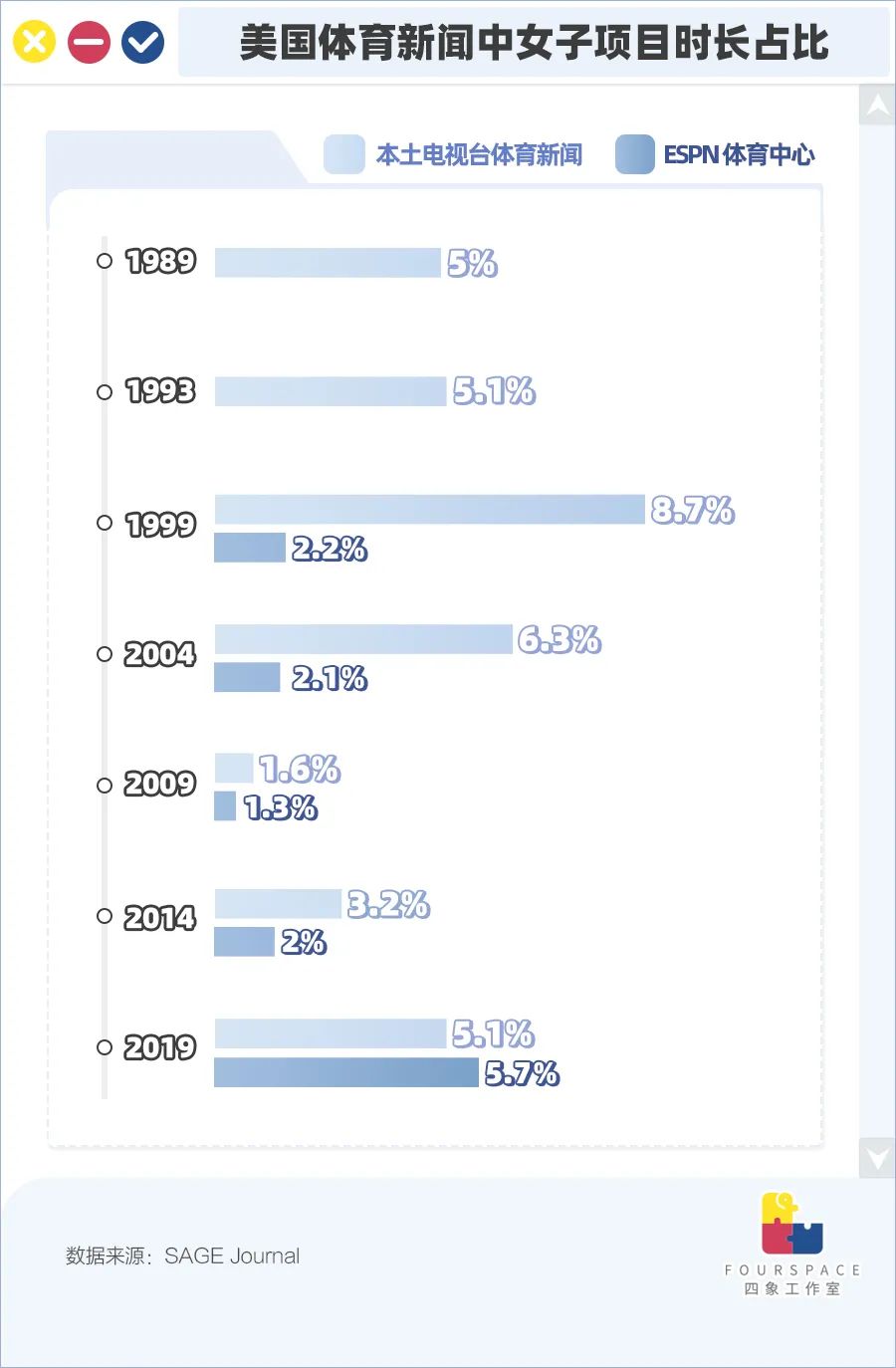 普渡大学的学者在对美国当地的体育新闻节目进行统计后发现,女子项目相关报道时长占比非常低: