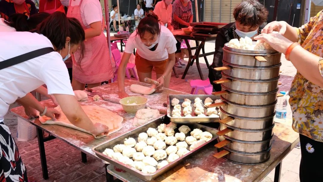 7月25日中午,留庄营村的十几位大姐正在准备蒸花卷。田梦迪/摄“我儿子是名交警,他在水里泡了一天后,回家告诉我只吃了三块饼干。我就想我在这里做花卷,给别人的孩子吃,也就是给我孩子吃了。”其中一个大姐告诉中国妇女报全媒体记者,她的儿子是在前线抗洪的交警。