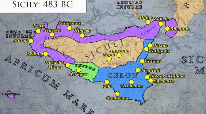 当然,迦太基方面的压力也不是没有触动过古希腊传统。尤其当发现后者可以从北非、西班牙与意大利招募大量同盟军,也就自然而然的开始寄希望于本族强人依附。例如由斯巴达移民建立的叙拉古城,就因为地理位置极佳而更容易积累资源,遂成为这个方向上的地头蛇势力。大名鼎鼎的僭主盖隆,就利用这个趋势崛起,并成为希腊世界的政治明星。岛屿南部的阿卡拉加斯僭主塞隆,也靠着相同机会发迹,只是在地盘和财力方面稍有不如。双方还深谋远虑的结成儿女亲家,以便将全部的多利亚希腊城市都凝结起来。