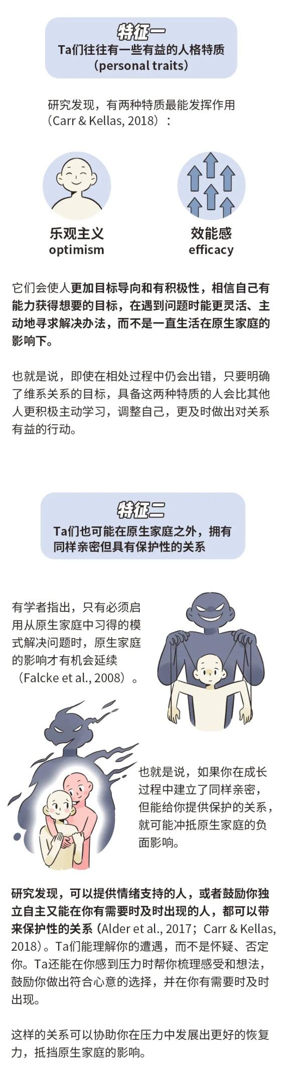 这样的来信让我感到心酸。原生家庭的问题已经让ta备受困扰,好不容易可以拥有自己的小家,却还要面对原生家庭留下的影响。有大量的研究发现,原生家庭不幸福的孩子,在未来的婚姻中确实可能表现出较低的情绪管理能力,较差的婚姻适应能力,对婚姻有更多负面感受和更低的满意度(Brown et al., 2015; Falcke et al., 2008)。但同时,研究者们也发现这并不是必然的结果,原生家庭不幸福的孩子,也可以得到幸福的婚姻。