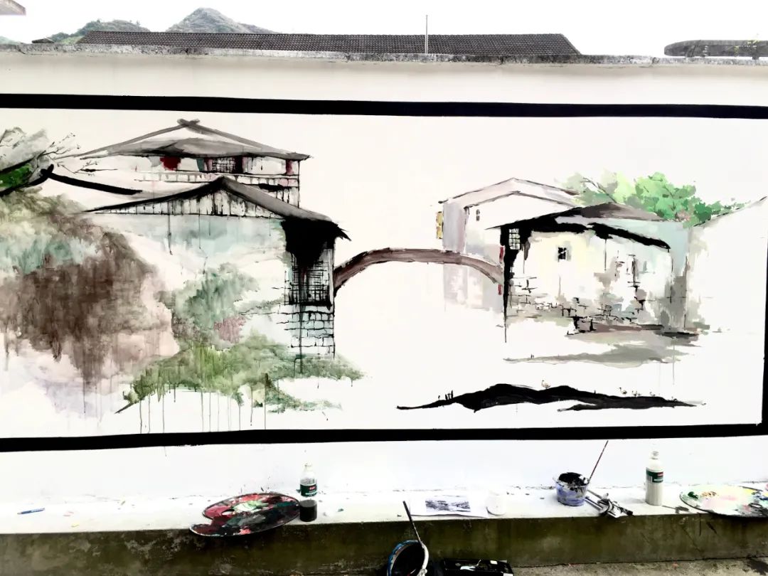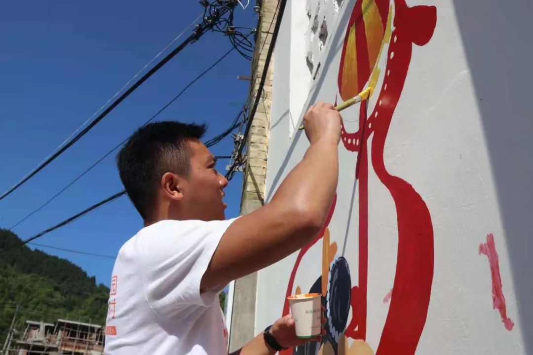 2016年,大一的黄哲浩参加了浙师美术学院第16届暑期社会实践队,这是他第一次接触墙绘。然而他发现,别具一格的农村风光、传统的手工制作品等乡村特色都逐渐被破败与杂乱埋没。“乡村并不应该这样,我想将乡村中的特产、手工等特色通过连环画和文字的方式展现出来,让更多人知道。”近40度的高温,黄哲浩背上画板,提起画笔。小桥流水,田园风光,第一幅墙绘落笔,黄哲浩决定用画为乡村打开一扇文化传播的窗口。