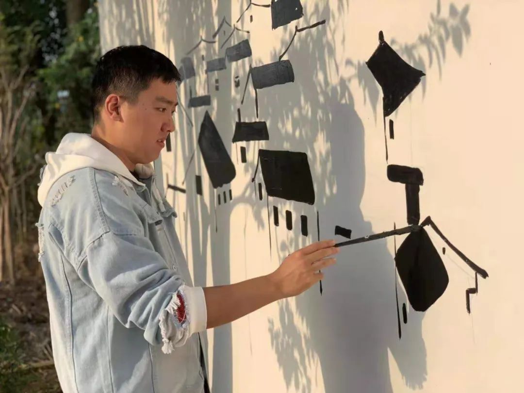 墙绘工作从来不是件容易的事,固定的角度、不同墙面的基底都是墙绘不可避免的困难。在初期,绘画的速度慢,熟练度不够,黄哲浩与同伴常交流琢磨数十遍,一次又一次的实践总结,墙绘的效率才有了不错的提高。“现在画墙绘就很轻松。”五年墙绘耕耘轻描淡写,黄哲浩口中的“轻松”背后沉淀着无数次的调研与沟通。“当时学校和学院给了我很大的支持,同时,指导老师更是陪我们亲自去村子里走访调研,指导我们如何更好地进行墙绘。”从清晨到夜幕降临,用一顶草帽和一支画笔描绘出独树一帜的农村文化。“绘画是自己的专业,也是自己的兴趣,不会觉得辛苦。”黄哲浩说。
