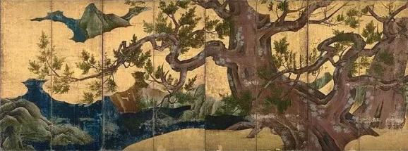 《桧图屏风》/狩野永德/1590年/东京国立博物馆藏以金底、艳色勾绘的画法曾盛极一时,