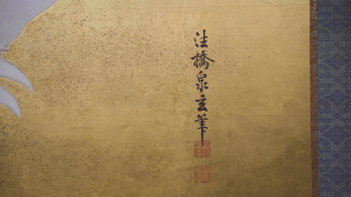 屏风下方带有画家法桥泉玄签名19世纪,欧洲掀起一阵“日本热”。