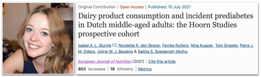REF: Slurink IAL, den Braver NR, Rutters F, et al. Dairy product consumption and incident prediabetes in Dutch middle-aged adults: the Hoorn Studies prospective cohort. Eur J Nutr. 2021 Jul 10. doi: 10.1007/s00394-021-02626-9.