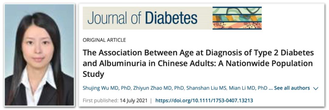 REF: Wu S, Zhao Z, Liu S, et al. The Association Between Age at Diagnosis of Type 2 Diabetes and Albuminuria in Chinese Adults: A Nationwide Population Study. J Diabetes. 2021 Jul 14. doi: 10.1111/1753-0407.13213.