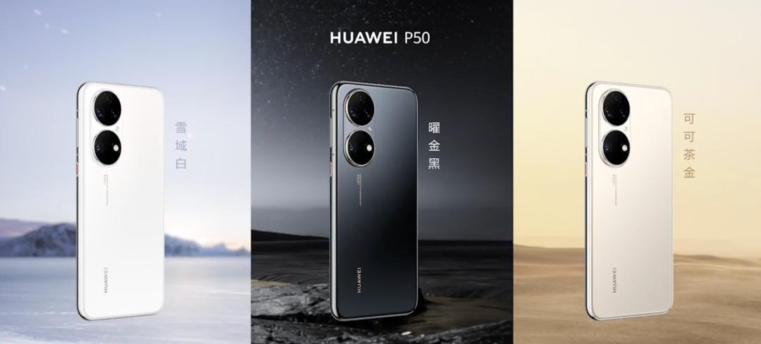 机型配色上, P50 采用了基本的黑、白、金三种配色。