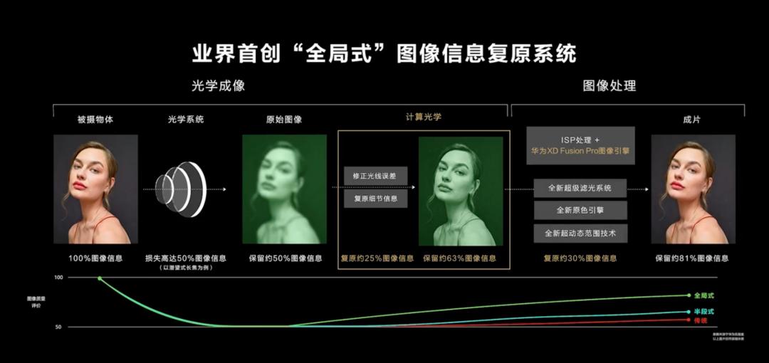 好家伙, 200 倍变焦,整就是一个望远镜啊,这么来看,两颗大眼睛的设计貌似就有那么点道理了。。。而在软件的图像处理上,华为这次还用上了一个叫 XD Optics 计算光学技术,它相比传统的手机图像处理,能多保留 25% 以上的图像信息,而在 XD Fusion 引擎的优化过后,整体能保留 81% 的图像信息。