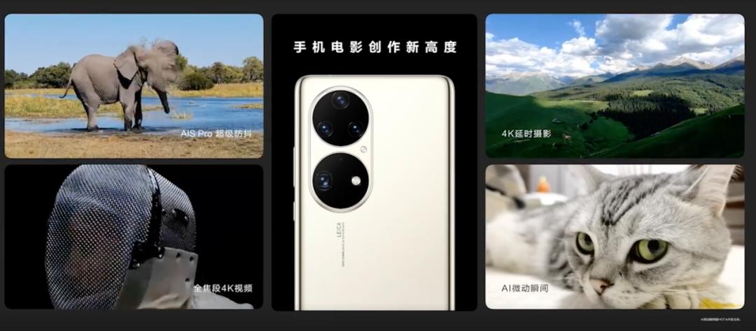 视频录制方面, P50 系列集成了全焦段的 4K 、 4K 延时以及 AIS Pro 超级防抖,对于手机视频的爱好者来说,算是一大福音了。