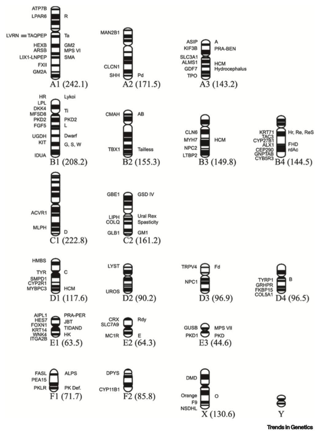 近日,来自美国密苏里大学的Lyons教授在Cell Press旗下著名刊物Trends in Genetics发表了题为“Cats – telomere to telomere and nose to tail”的文章,简要论述了猫科动物基因组研究的重要意义。在动物基因组医学方面,全基因组测序和全外显子组测序可以为家猫医疗保健提供基因组诊断工具。根据基因组研究,不仅可以为公认的疾病定义新的疾病变体,还可以为已知疾病定义新的基因变异,等等。基因组数据使对猫的致病因素和变异性状的鉴定更加迅速,如目前发现可以致病的84个突变,处于负选择状态,还有44个理想突变,处于正选择状态(图1)。而通过在54条猫科动物组学数据基础上构建参考基因组,则发现猫科动物具有较高的遗传多样性,平均每个个体携带约960万个单核苷酸变异(SNVs),比人类每个个体大约携带400到500万个SNVs要多。因此,庞大的猫科动物遗传变异适用于比较遗传学研究,不仅可以发现猫科动物性状和生物医学模型等的因果变异,而且其无害变异也有价值,可以与人类意义未明的变异(variants of uncertain significance, VUS)数据库进行比较,有望破译VUS的生物学功能。