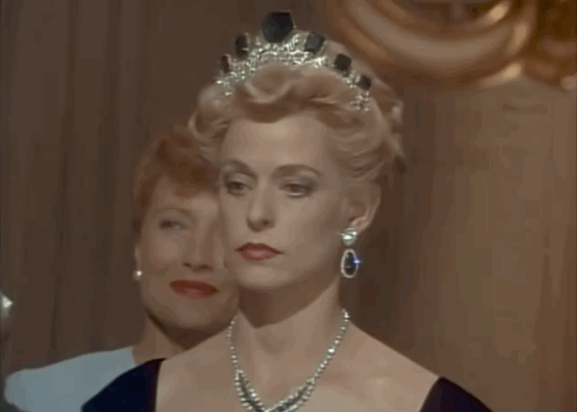 年轻的芭芭拉就对如此庞然的宝石项链驾轻就熟,此时宝石于她像是一副保卫自己的铠甲。年老时将项链戴做皇冠,又颇有“无法做真正的公主,那也要为自己带上冠冕”的倔强。