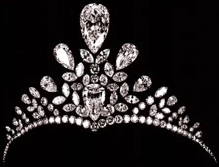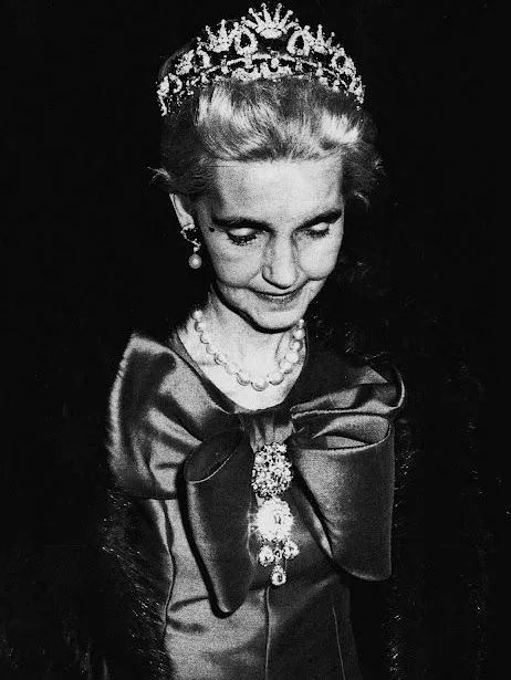 在芭芭拉的优雅从容面前,百兽之王也自知逊色,只得化作衣领上的一方点缀。除却这”强大“的一面,她的一生始终被”公主梦“的粉色泡沫围绕,珠宝盒里一顶顶奢华的冠冕更是让这个梦变得真实。最后一段婚姻结束后,芭芭拉请梵克雅宝打造了这个由众多梨形切割钻石打造的皇冠。