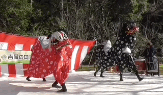 可以说日本舞狮走出了自己的道路,并且成功将其融入进了民俗文化里。这种情况下技术始终要服务于故事,所以有需要的话也能直接舞牛。