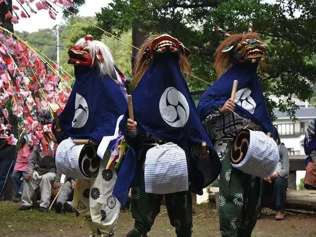 风流系狮子舞主要集中分布在关东和日本东北地区派系虽然不同,但他们都认为狮子嘴巴开合敲打出的声音可以驱邪,如果被狮子咬一次脑袋,一年都会无灾无病。