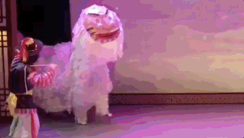 但不管怎么舞,不变的还是对发型的重视,可能也只有在这才能见到这么在乎刘海儿位置的狮子了。