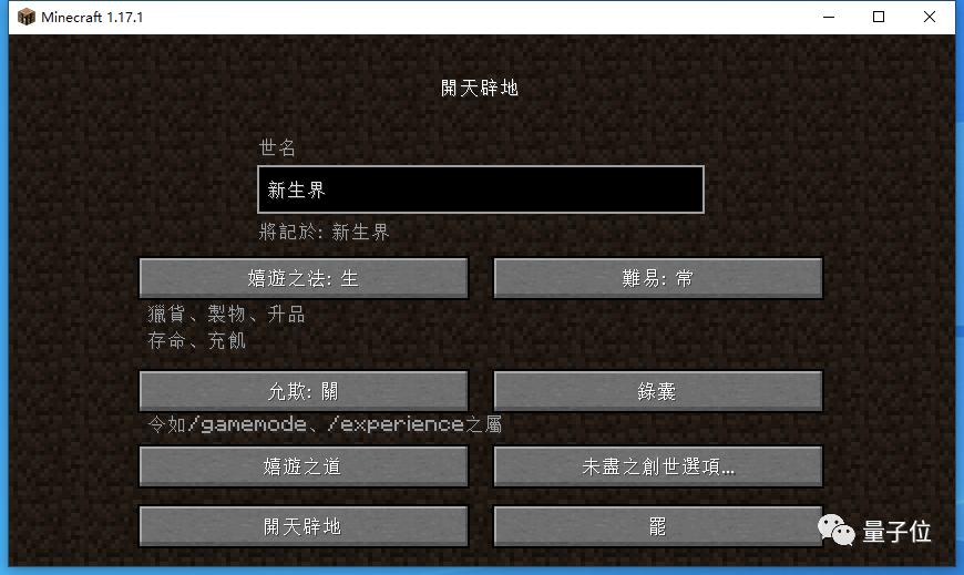 在1.17.1正式版里,选择文言文作为游戏语言后,加载画面上来就是一个鸿蒙初开。