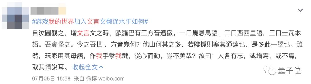 而一经实装,文言版《我的世界》的热度就从微博到b站全面引爆。争论甚烈,译者云:兴趣使然
