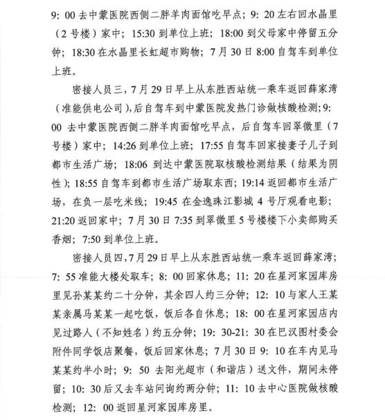 以上行程为马某本人自述,现马某已在固定隔离点集中隔离医学观察,7月30日23:10核酸检测结果为阴性,且本人到过的上述重点场所环境采样检测结果均为阴性。