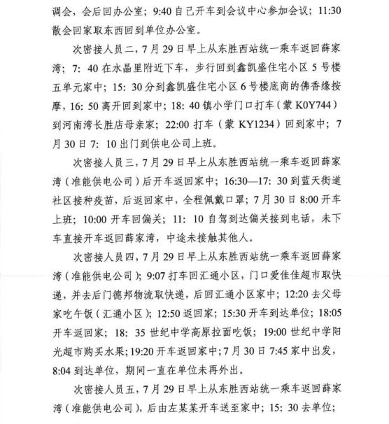 7月22日,10时29分三人乘坐K620次车到达萨拉齐站出站后,乘坐出租车前往土右旗山格架工业园区内蒙古新特硅材料有限责任公司工地宿舍(乘坐黄蓝相间出租车,车牌不详,现金支付30元,三人自述全程佩戴口罩)。