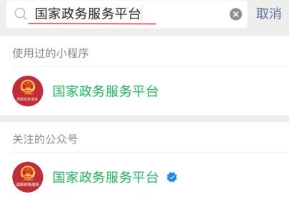 1.通过微信搜索进入“国家政务服务平台”小程序