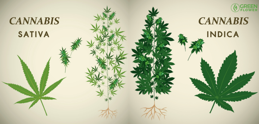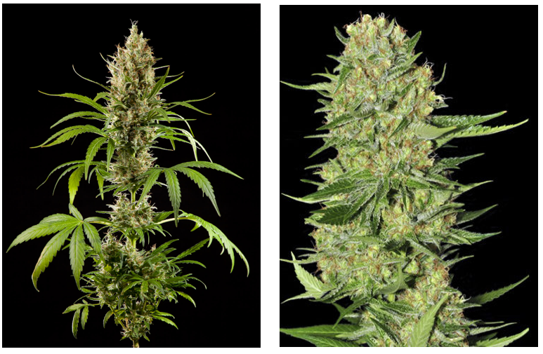 普通大麻(左)和印度大麻(右)(图片来自网络https://news.green-flower.com/indica-vs-sativa/)