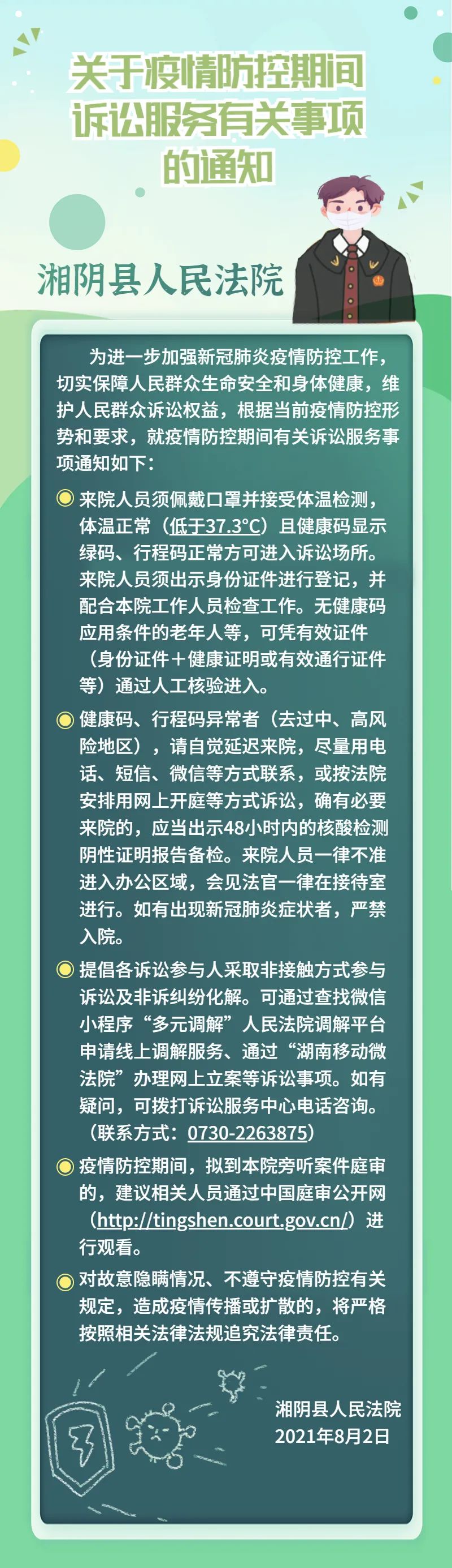 湘阴县人民法院关于疫情防控期间诉讼服务的通知