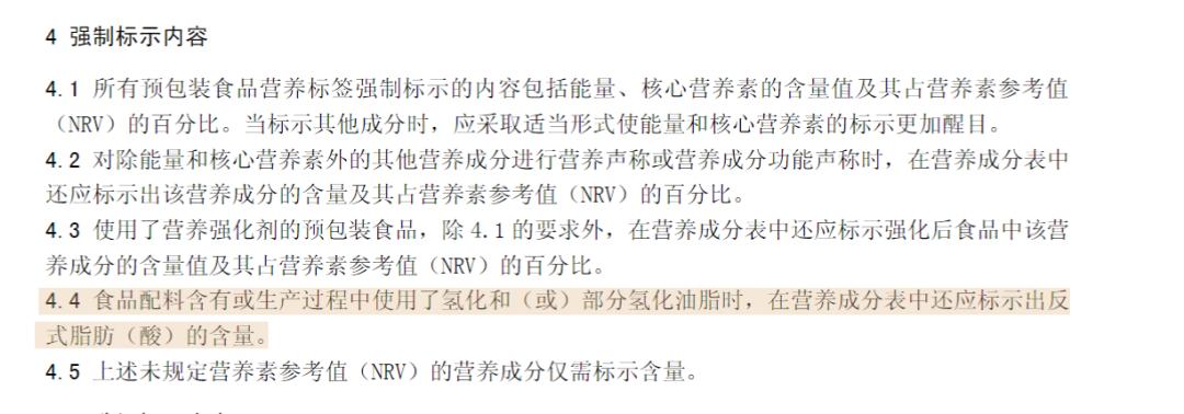 如果原料中含氢化植物油,那么根据相关标准,原料上要写明,同时营养标签上要标识“反式脂肪酸”的含量,含量在0.3g/100g以下可以标注为“0”。