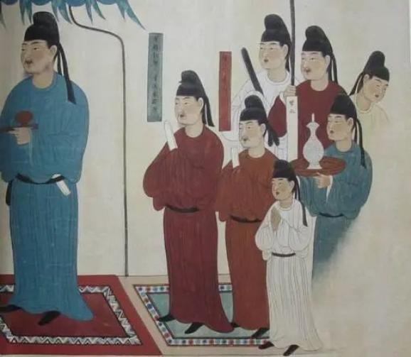 到了敦煌石窟的中期,供养人的形象、位置、规模、衣着等都有了巨大的变化。此时供养人画像,由高不盈尺的小像变为等同人身的大像,从不显眼的主题画下,龛下的位置而至道两侧壁画上,并为独立的画面。