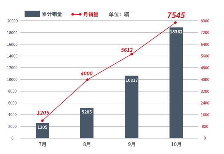 比亚迪适时地把刀片电池运用到了时下最高端的汉EV上,该车型也实现了自7月份上市以来连续4个月的销量攀升,共计达到18362辆。