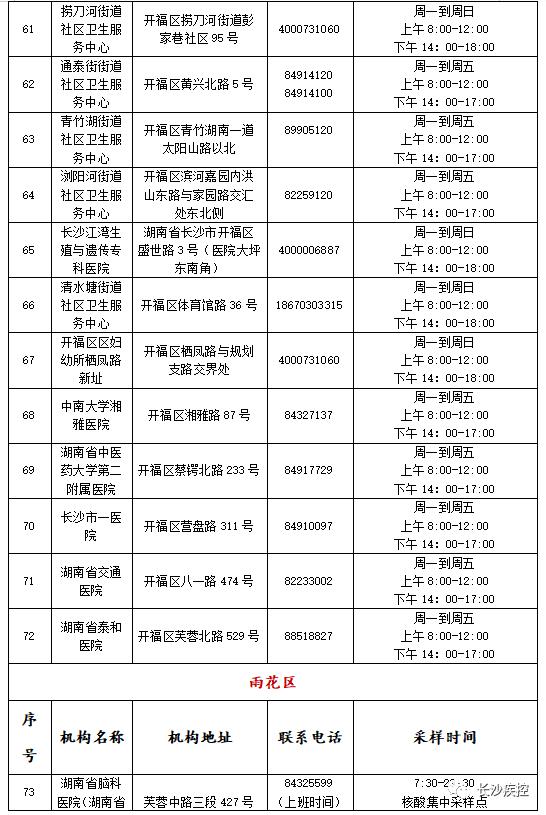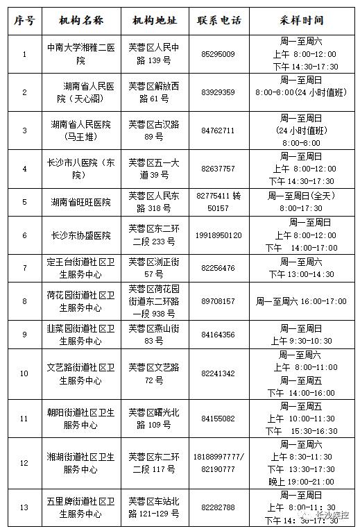 长沙最新最全核酸检测地点清单来了!
