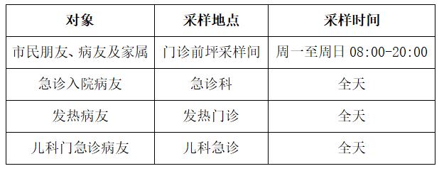 采样时间:8:00-24:00(根据疫情防控形势调整)