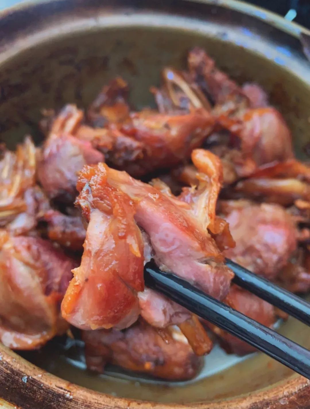 小红书@鸡腿儿是我的看上去肥腻的鸭肉实际上一点都不腻,肉质细嫩,鸭肉的表皮散发着红润明亮的光泽,鸭肉整体浸泡在油汪汪的汤汁中,即使之辛辣的姜片此时也有了鸭肉的鲜香。