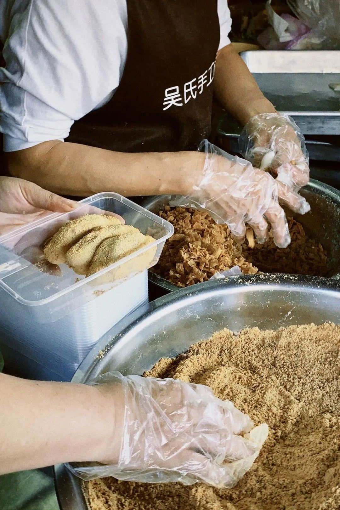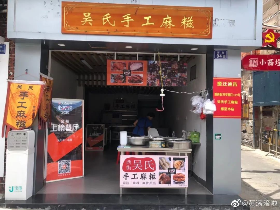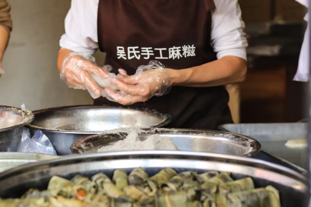 weibo@黄滚滚啦近两年才逐渐走向大众视野中的吴氏手工麻糍凭借着纯手工制作的态度在泉州一带火了起来,从糯米团子的制作开始到麻糍的包裹等各个步骤都是纯手工制作,不含任何机械作业,这也是短短几年时间里,吴氏手工麻糍能够拥有众多回头客的主要原因。