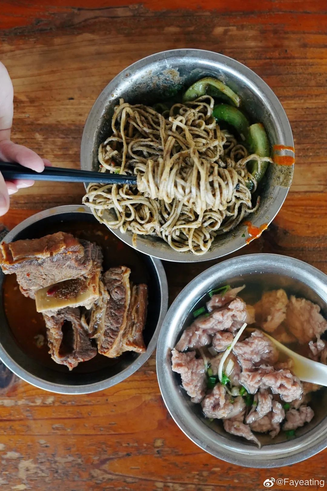 weibo@Fayeating市井气的装潢风格、简单的泡茶工具,来了客人就吆喝上两声,没有客人就喝茶、聊天的佛系存在。拌面、牛肉羹和牛排是店铺的招牌,花生酱做料汁,抓住拌面的最好时机,让面条与花生酱充分的融合,根根不落的沾上浓郁的酱汁,一口下去,满嘴都是花生的香气,回味中还能感受到些许辣味。牛肉羹,清汤的汤头,简单的生姜丝提味,嫩滑的牛肉配合着清爽的汤汁,回味无穷,冲着这股子香味都能生干两碗米饭。