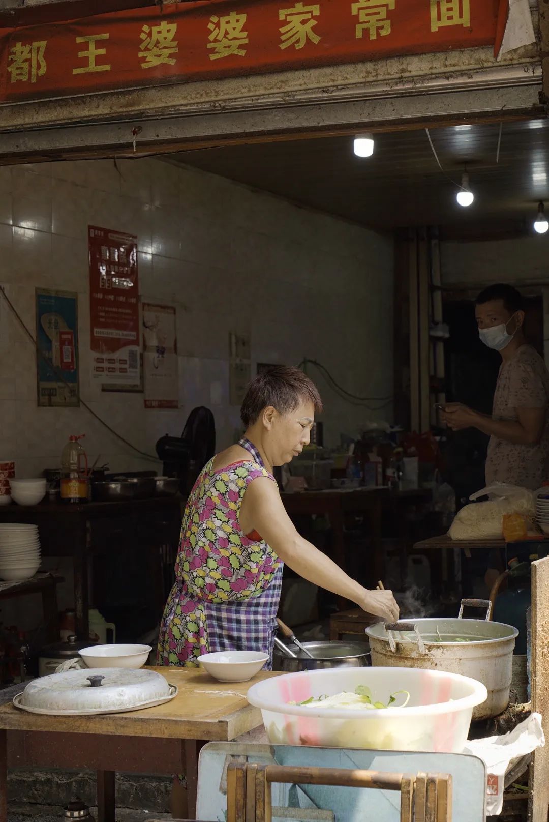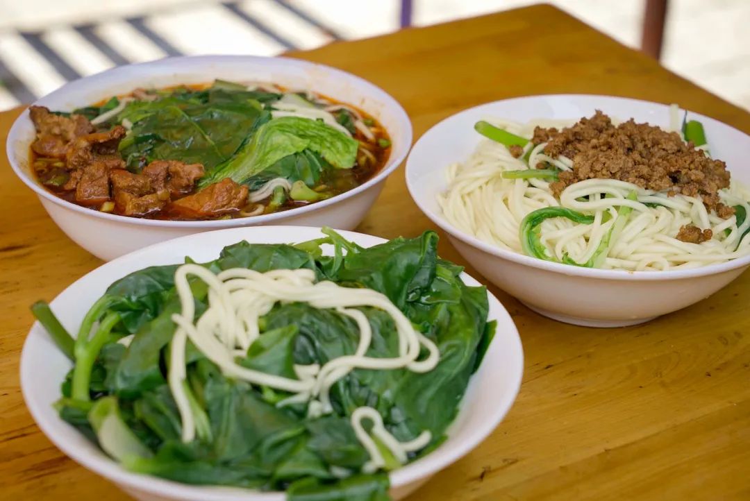 王孃总是红头发,夏天爱穿袜子穿拖鞋,手不离烟,但动作麻利,待人真诚。店里只卖三种面,杂酱、牛肉和排骨,佐料打底放勺猪油,热面往上一扑,再拿筷子一和转,根根面条晶莹剔透,芝麻香、熟油海椒香齐齐扑上来,三两口直往肚里赶。