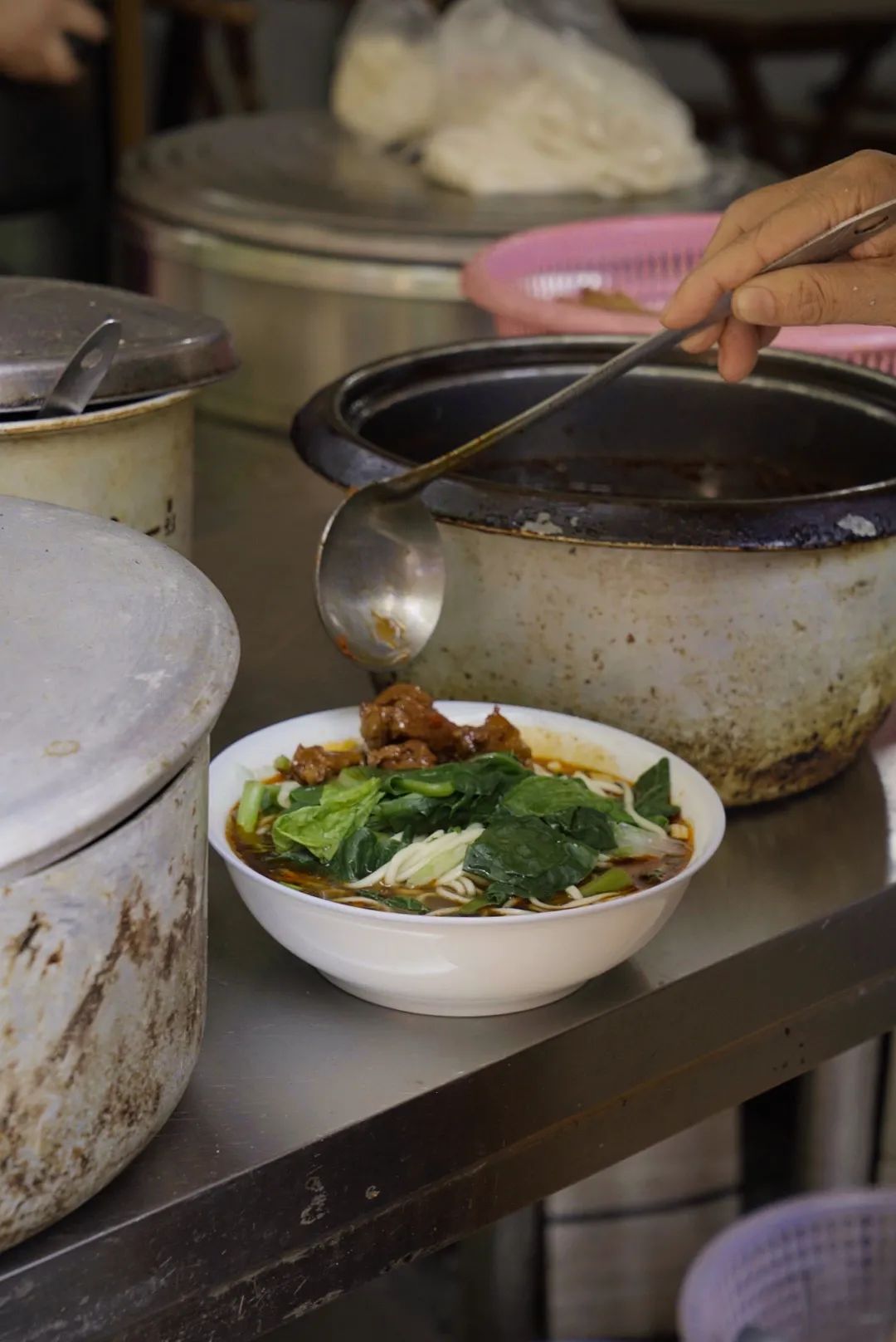 若是加份素菜,就更能体会到“家常”二字真谛——小白菜、藤藤菜、软浆叶,像极了头天晚上妈妈做饭没用完的叶子菜第二天做了一份素菜汤,目的是让你吃饱。