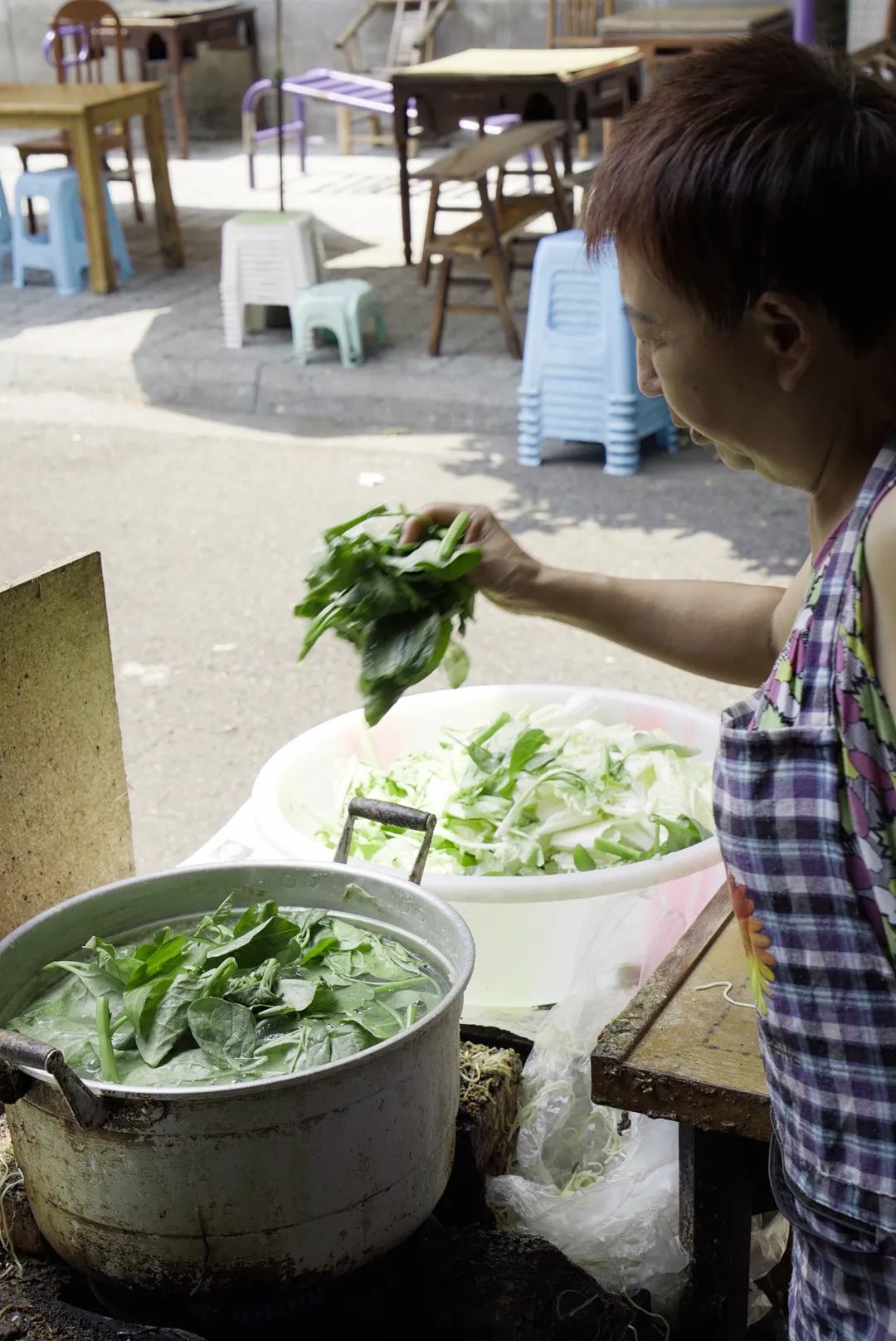 再到晚上,新开的3号火锅、周老鬼火锅、巷巷火锅,以及啖三花麻辣烫让竹椅发挥夜间力量,营业不过十点,也保留对原住居民们的尊重。02/