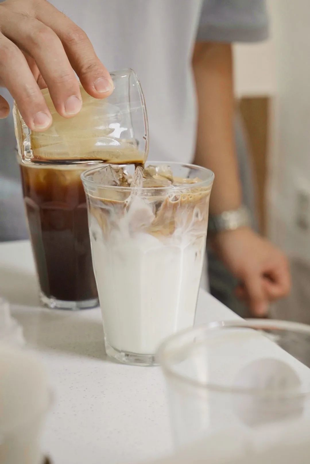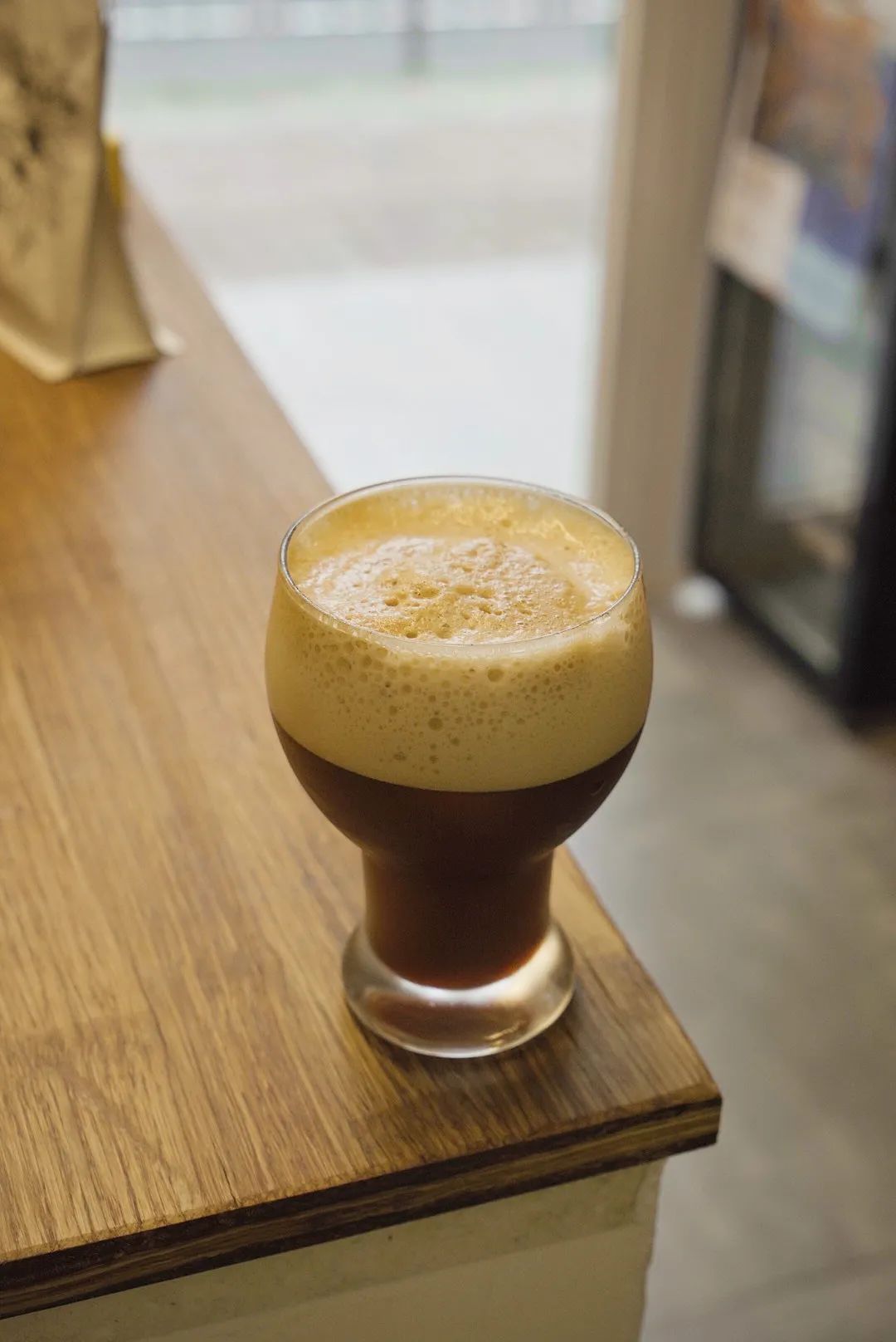 在印象中从来都是彩色头发的大仙最近换回了黑头发,戴着口罩让人以为新招了店员。和发色一样换新的,还有一款新特调,阿尔卑斯。苏打水、咖啡液和糖浆的巧妙融合正如大仙描述一样,解渴生津,就着啤酒杯真有在喝小麦发酵饮料的感觉。
