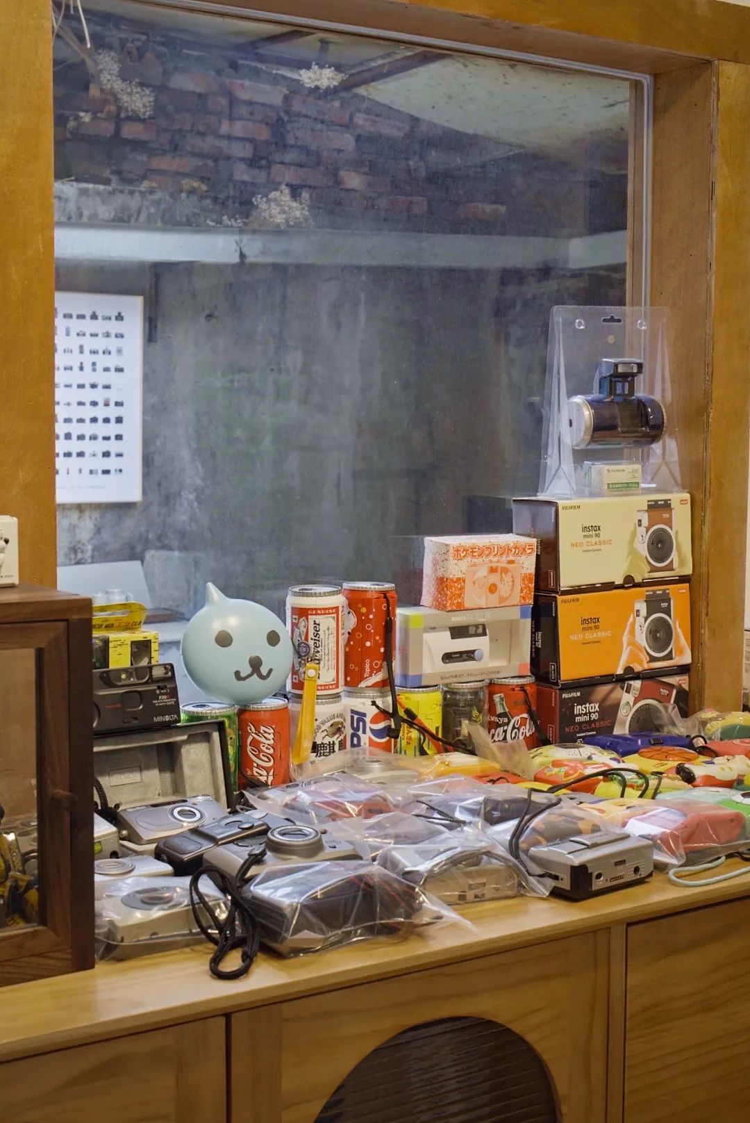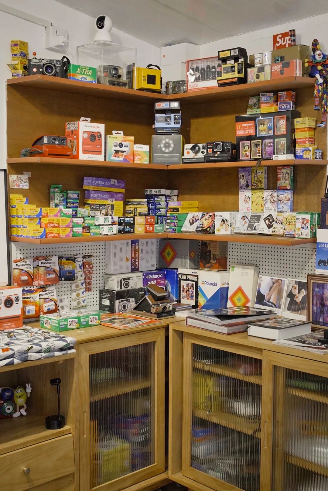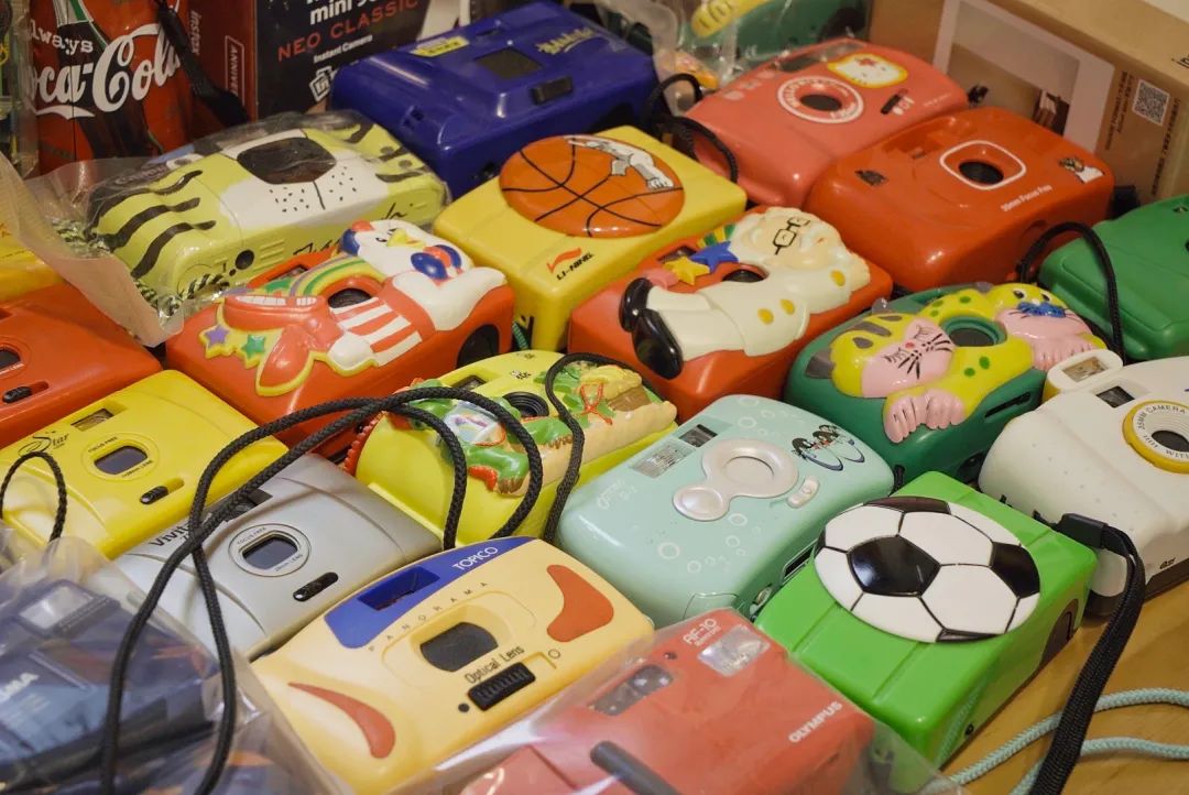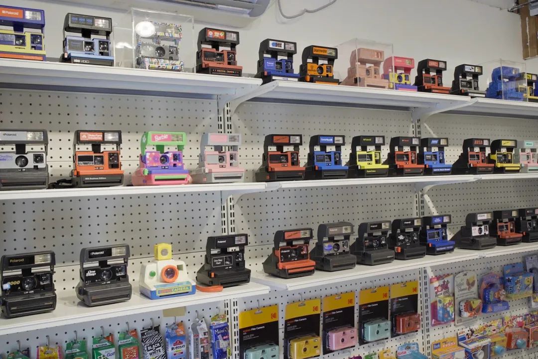 对于胶片和宝丽来爱好者来说,精彩中古相机就是天堂。货架上依次排开各式宝丽来相机,桌面上堆积起卡通胶片机小山,但凡有点童年记忆,都会在进店后满目相机里暗自失声尖叫。
