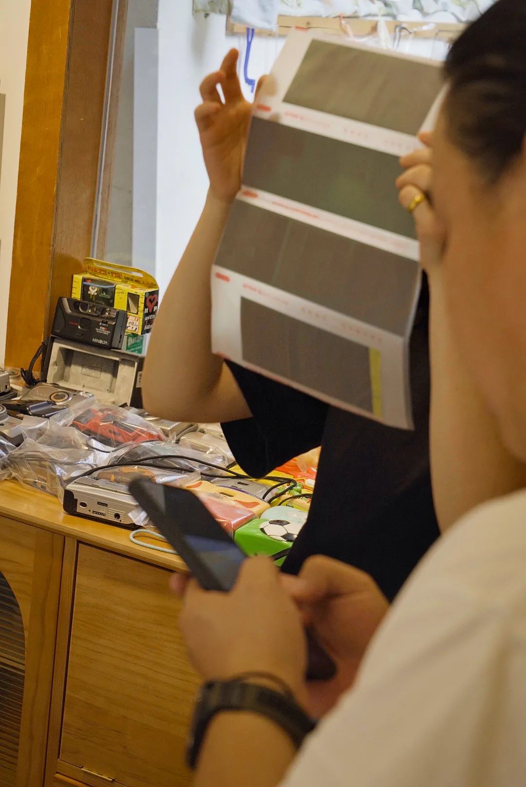 逛回精彩中古相机,才发现认亲的最大bug是没有认清眼前人。驻店打工人之一瞎子是店员,也是摄影师,同样也是艺术家。自己的小展还在王家巷的黑羊墙展出,真身却坚持每天到店打工,请把“艺术家也是要打工的”打在公屏上。
