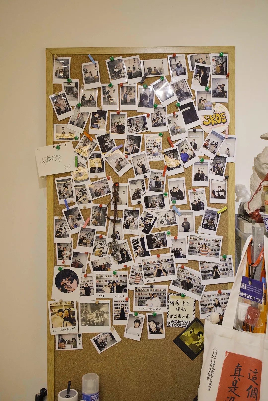 贴上的宝丽来和拍立得的墙壁可被视为认亲墙,三张里面总有两个认识的人。你别说,大家藏得挺深的,果然是宝藏小店,来了不会发朋友圈告诉别人的那种。