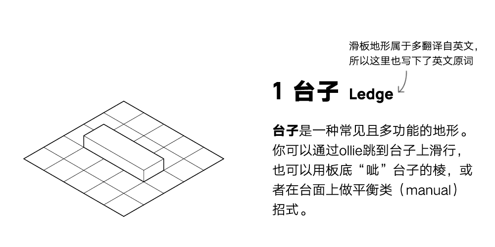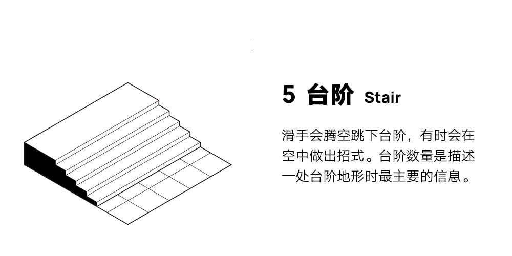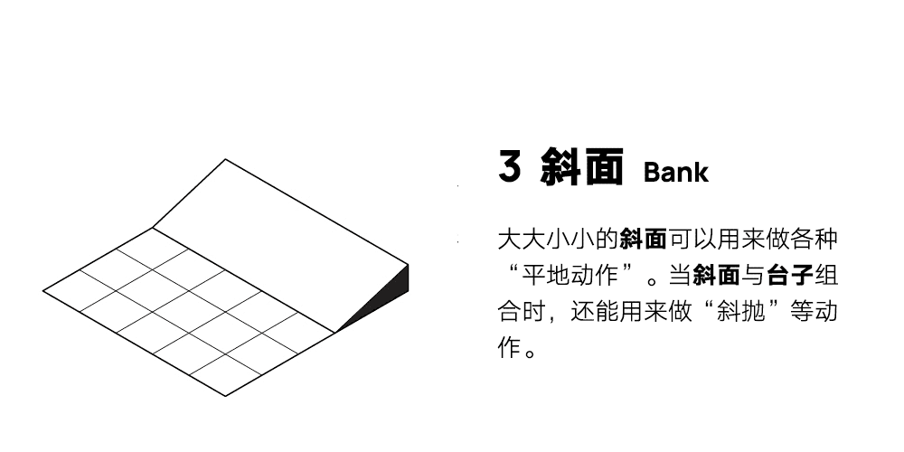 首先,我们需要了解滑板的几种基本“地形”和“招式”: